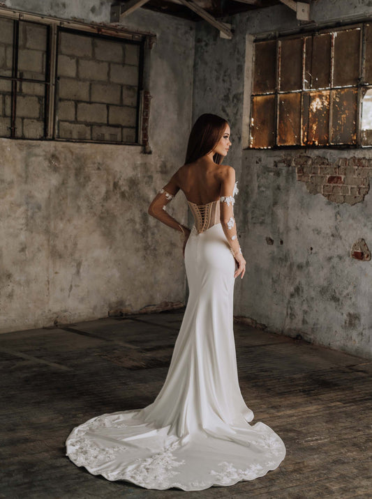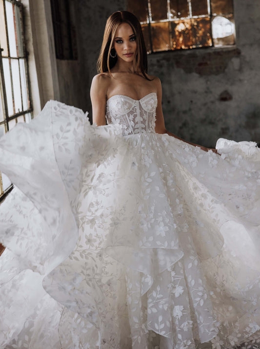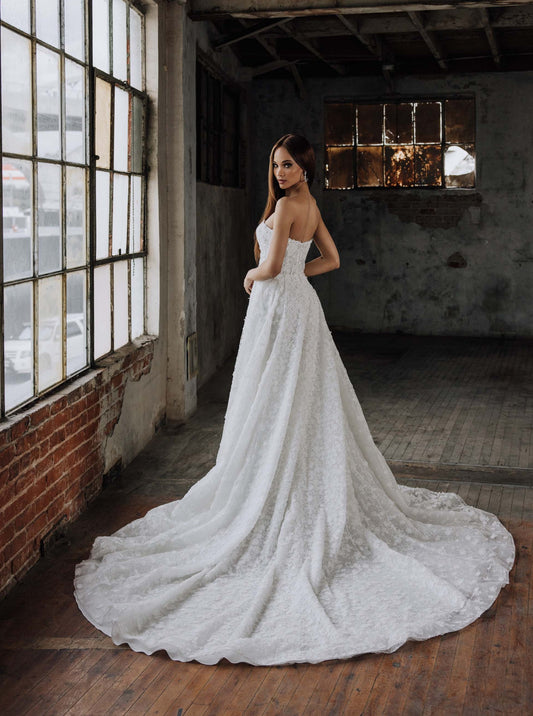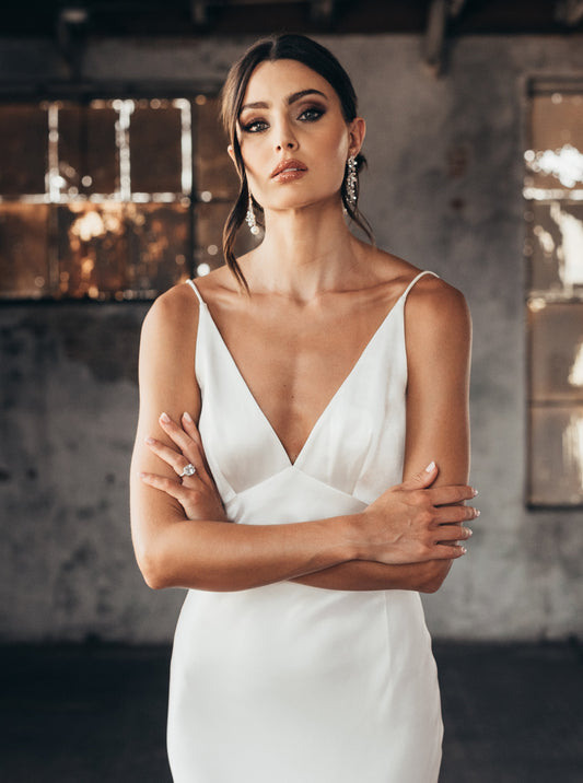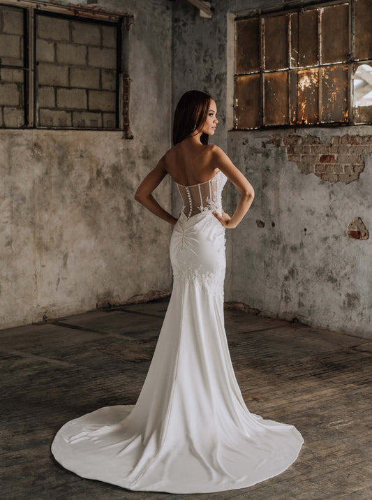 OUR DOWNTOWN COLLECTION EMBRACES THE DEEP SHADOWS OF LOVE TO EVOKE THE LONGING THAT OFTEN ACCOMPANIES ROMANCE. THE GOWNS ARE BEAUTIFULLY JUXTAPOSED AGAINST DEMURE SHADES OF TWILIGHT DRAWING THE EYES TO FOCUS SOLELY ON THE SULTRY SILHOUETTES AND GLAMOROUS DETAILS LIKE DARINGLY LOW PLUNGES AND HIGH SLITS, SHEER FABRICS, AND STRUCTURED BUSTIERS WITH INTRICATE EMBROIDERIES.
